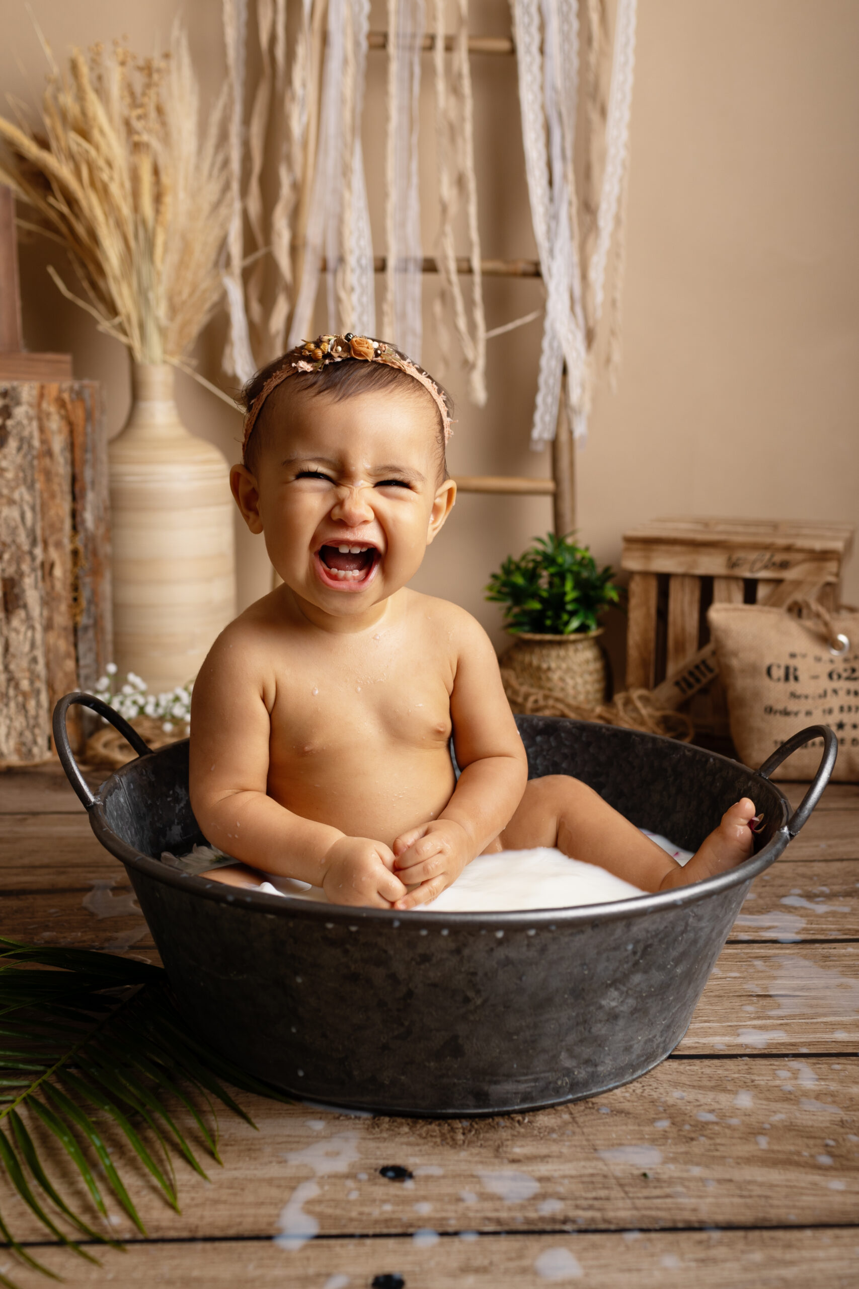Nous finissons toujours cette séance par un bain de lait, pour que bébé termine en beauté !